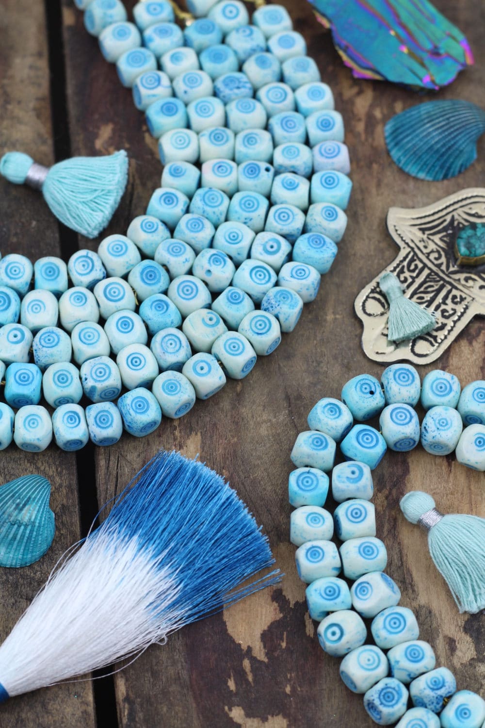 Icy Blue Bullseye Cube Hand Carved Bone Beads 10x10mm 21 Etsy Ireland
